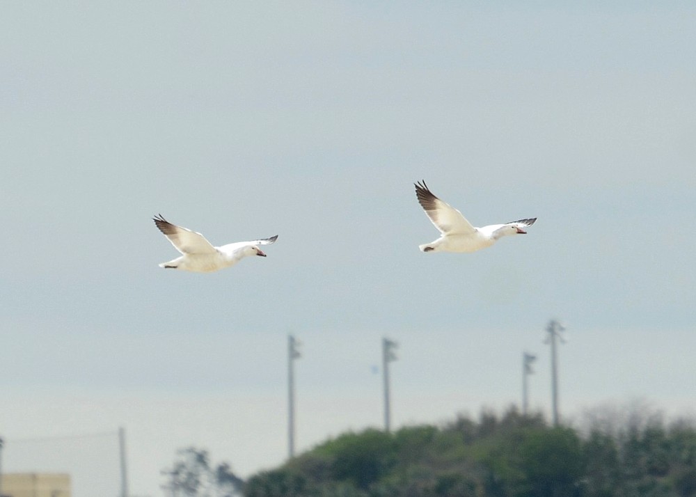 Snow Geese (#160) continue at Imeson Rd field at westside. Three white and one dark morph. - March 8, 2015