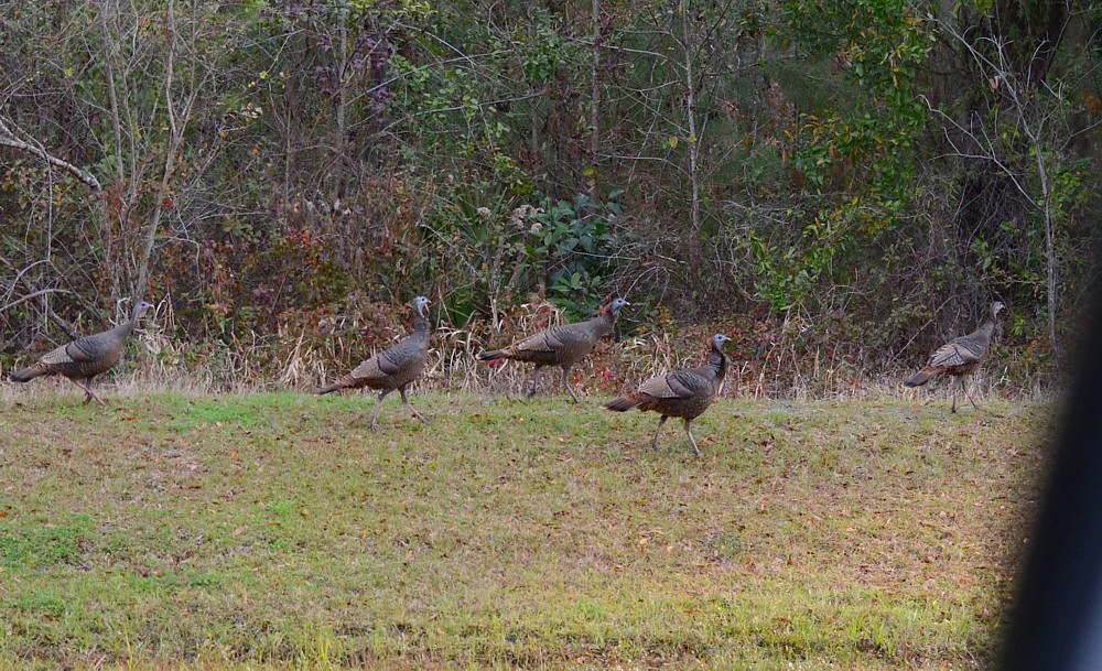 I was looking this morning for reported Pine Siskins at Seaton Creek Preserve but couldn't find them. Then I checked usual spot for Wild Turkeys and they were there. - January 30, 2015