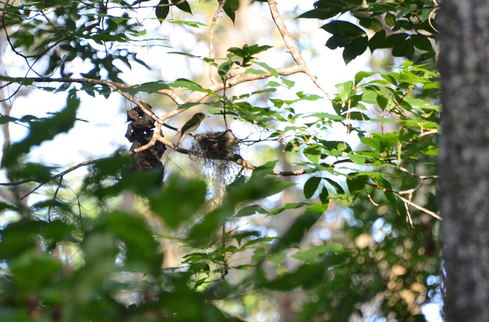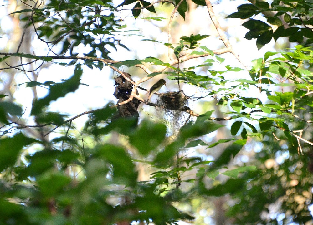 Pair of Acadian Flycatchers on their nesting ground at Seaton Creek Preserve, pic 2. Other highlights: Hooded Warblers singing all over the preserve and 2 Yellow-throated Vireos calling up on a trees, heard only. - June 4, 2016