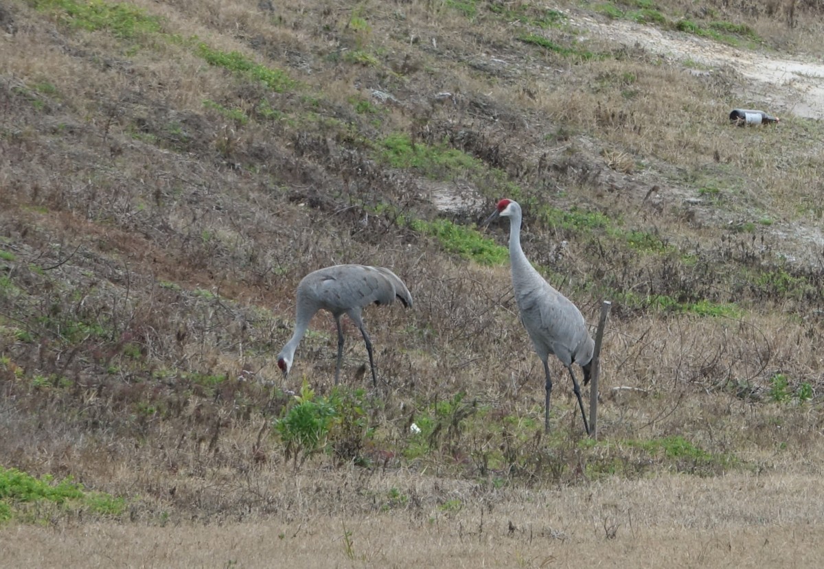 Two Sandhill Cranes were by the New World Avenue just were they supposed to be.